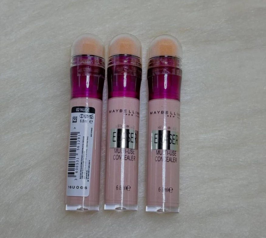 Pastel pembe tonlu, sünger aplikatörlü Maybelline çok amaçlı kapatıcı, 02 Nude rengi, 6.8 ml. Maybelline eraser