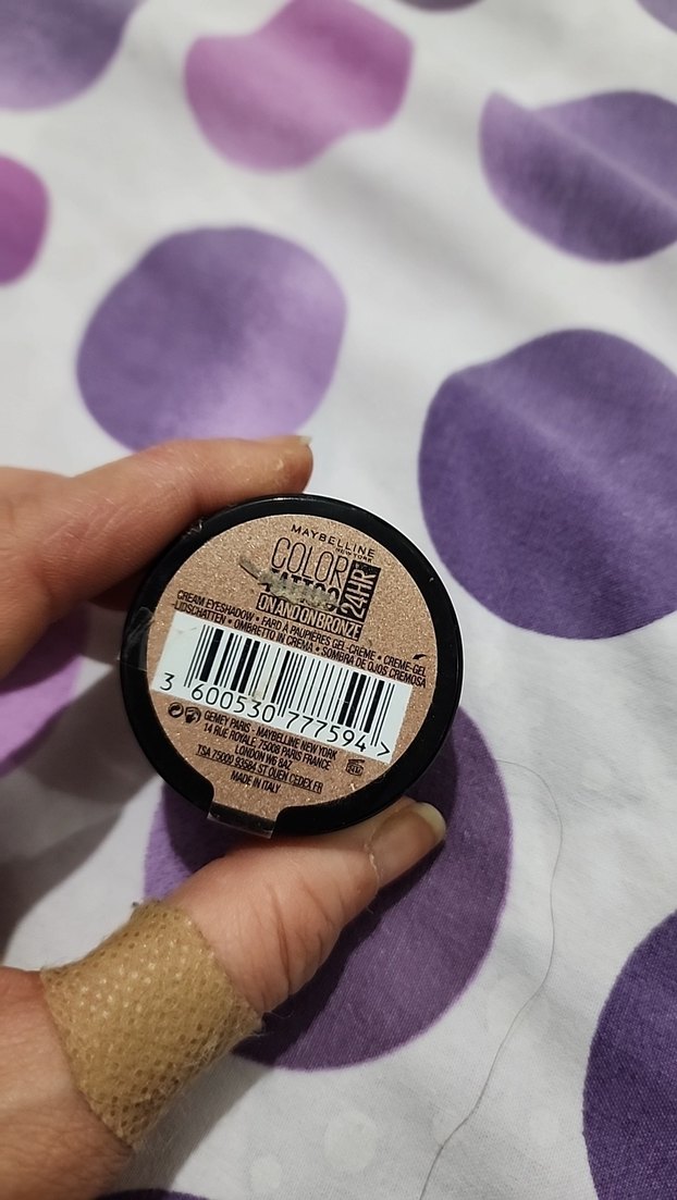 Maybelline Color Tattoo 24HR göz farı, parlak renkte uzun süre kalıcı renk sunar. Kompakt boyutu ile taşınması kolaydır. on and on bronze rengi denemek icin 1kere rengine bakildi kullanilmadi görüldügü gibi
