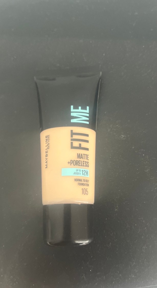 Maybelline Fit Me Mat + Poreless fondöten, 105 beige tonunda, mat bitişli ve gözeneksiz görünüm sağlar. SPF 18 ile 12 saate kadar kalıcıdır.