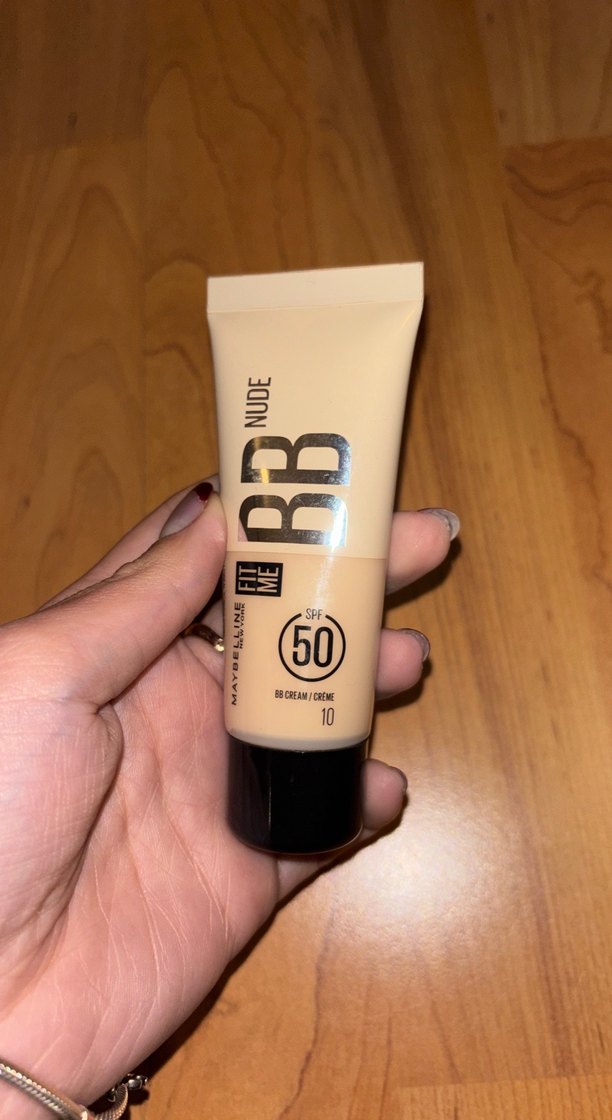 Maybelline Fit Me Nude BB Krem, bej tonunda, SPF 50 güneş koruması ve hafif kapatıcılık sağlar. Ton numarası 10.