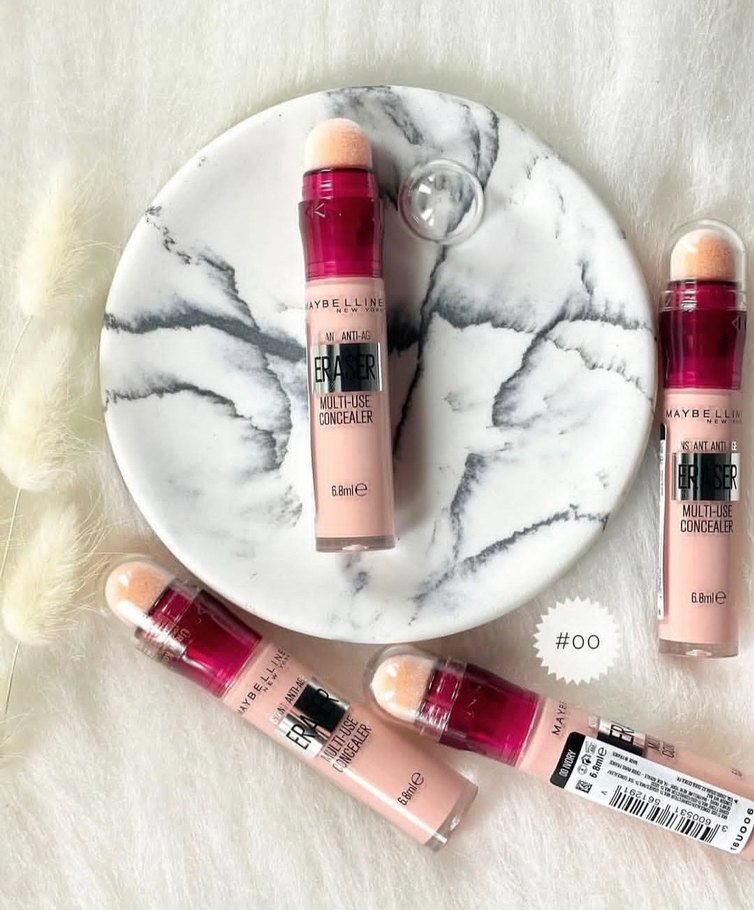 Maybelline çok amaçlı kapatıcı, açık pembe tonunda ve kolay uygulama için entegre sünger aplikatöre sahip. Ürün üzerinde #00 etiketi bulunuyor. ✨00.01.02 no