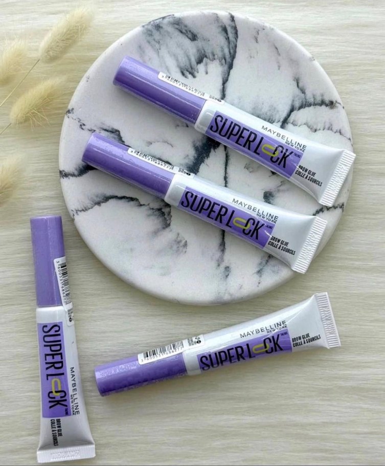 Maybelline SuperL-ck mor pastel maskara, canlı renk ve kolay uygulama sağlar. Tüp üzerinde net marka yazısı bulunur.