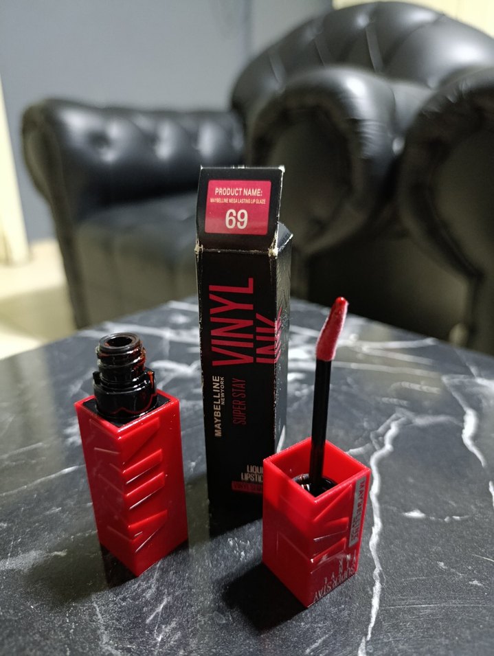 Maybelline markasına ait 69 numara koyu kırmızı vinil ruj, parlak ve canlı renk sunar. Pürüzsüz uygulama sağlar.