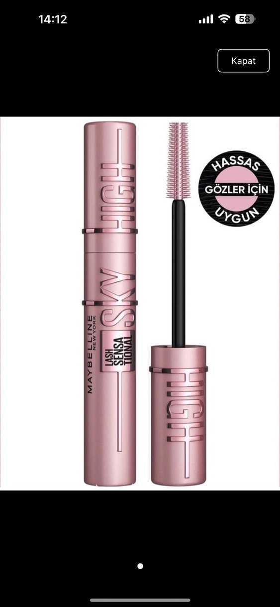 Maybelline Lash Sensational High parlak pembe maskara, hassas gözler için uygundur. Kirpikleri belirginleştirir ve hassas uygulama sağlar. ️