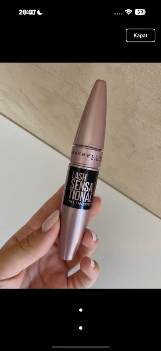 Maybelline Lash Sensational maskara, pastel bej renkte, kirpiklere tam yelpaze etkisi sağlar.