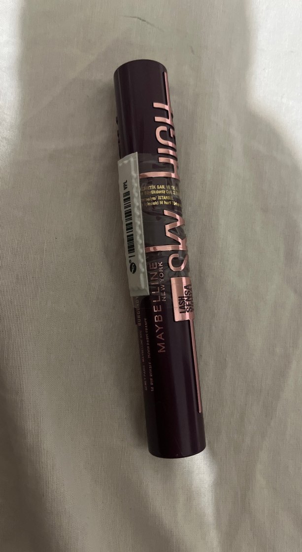 Maybelline Lash Sensational maskara, koyu renkte ve bej etiketli. Kirpiklere dolgunluk ve tam kapatma sağlar.