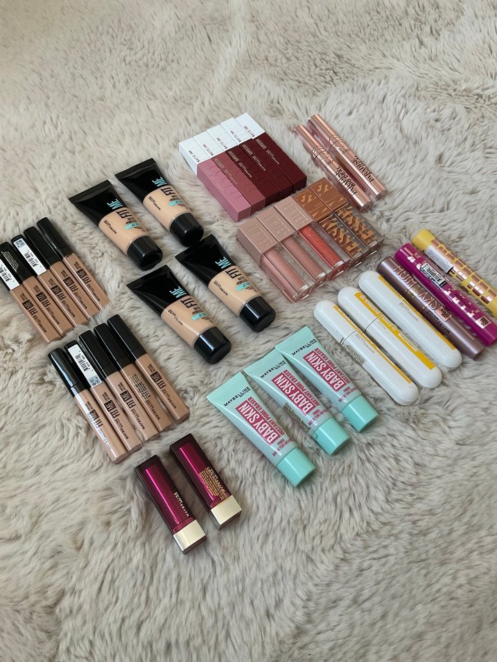 Fit me fondöten Fit me kapatıcı  Baby skin baz blushed Rose ruj curl bounce maskara sky high maskara firework maskara collasol bubble maskara loreal paris big deal maskara  superstay matte ink ruj lifter Gloss sun kisser detaylar ikinci görseldedir