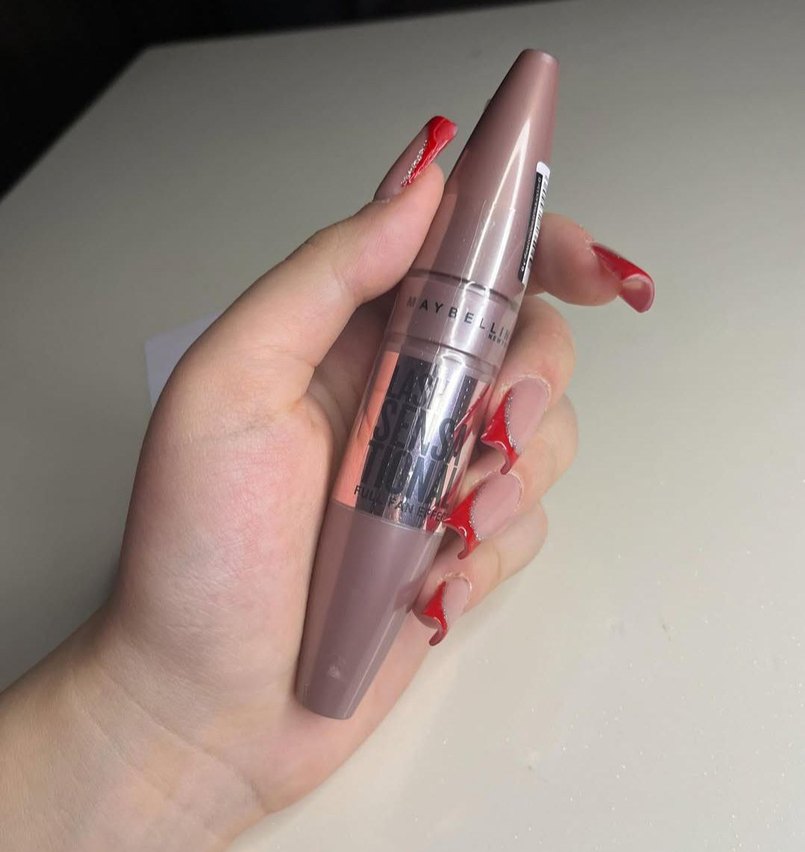 Maybelline maskara, bej gövde ve gri fırça ile hassas uygulama ve belirgin kirpikler sağlar.