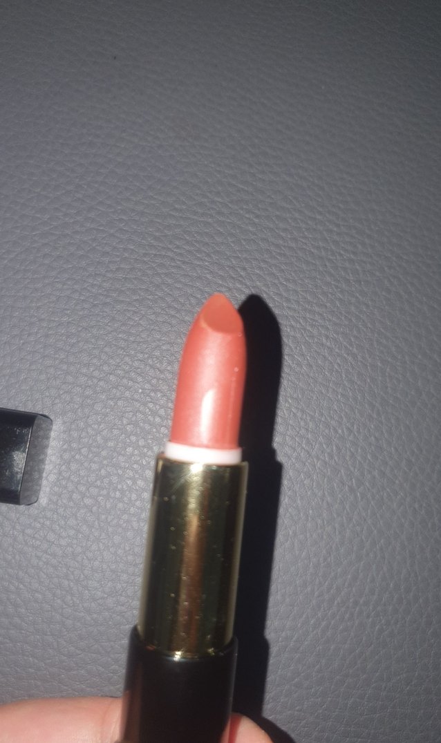 Parlak bitişli, pürüzsüz dokulu bej ruj.