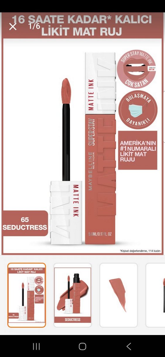 Maybelline Matte Ink likit mat ruj, Seductress 16 saate kadar kalıcı ve bulaşmaya dayanıklı formüle sahiptir.