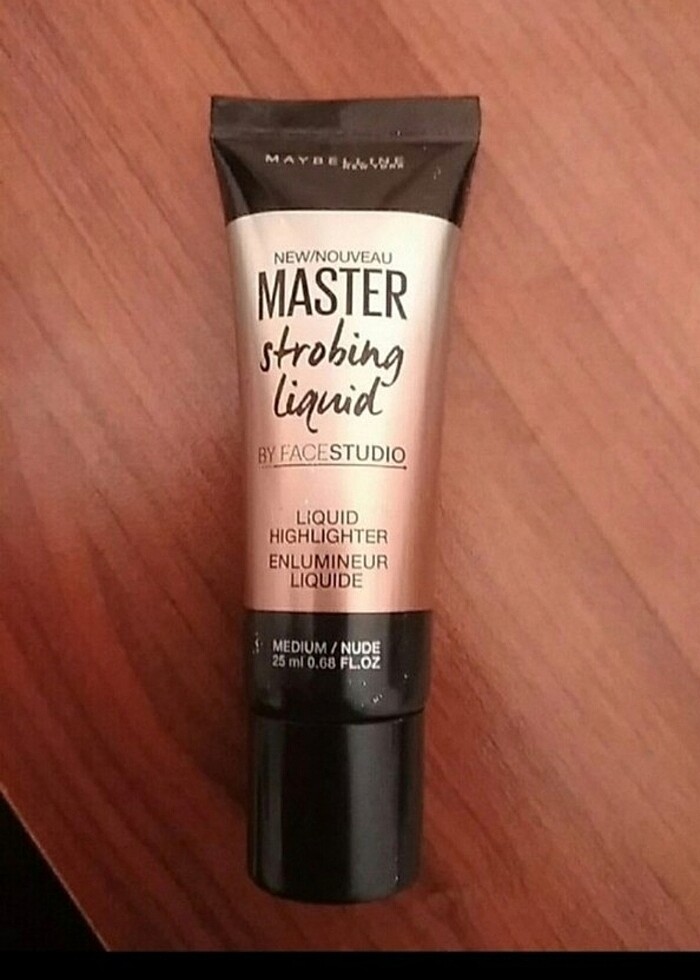 Maybelline New york master strobing liquid highlighter bir kaç kere kullanıldı sadece neredeyse tamamı dolu makyaj çantasında arkasındaki kağıdı yıprandı