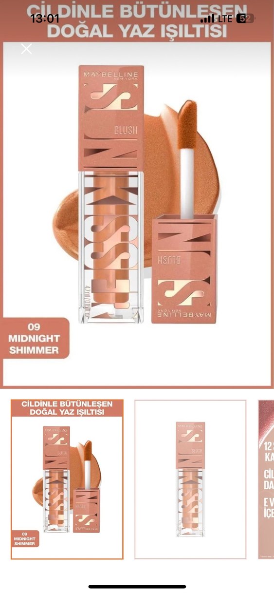 Maybelline sıvı allık 09 Midnight Shimmer, ciltle bütünleşen hafif bej tonuyla doğal yaz ışıltısı sağlar. ✨