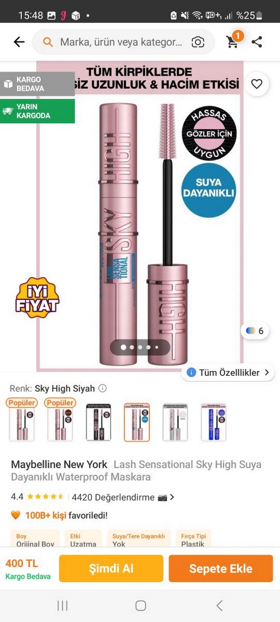 Maybelline Sky High Suya Dayanıklı Maskara