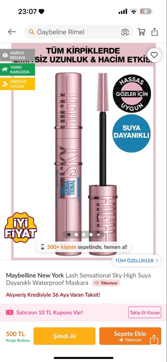 Maybelline Sky High Suya Dayanıklı Maskara