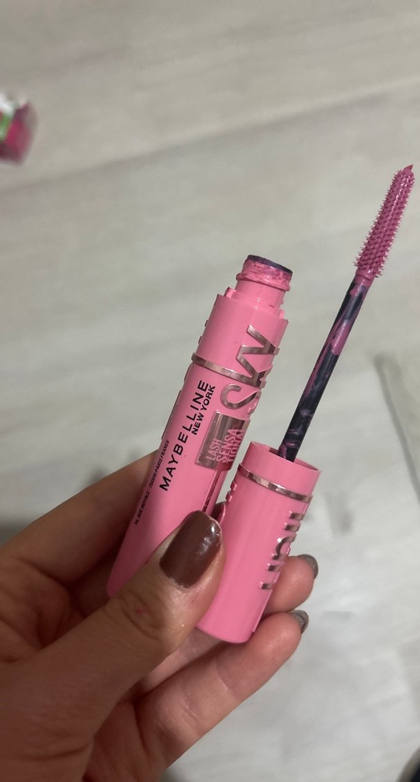 Maybelline Sky maskara, pastel pembe renkte, kolay uygulama için hassas fırçaya sahip. Kirpiklere renk ve belirginlik katar.