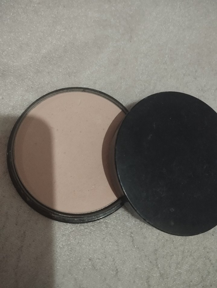 Doğal bitişli bej renkli yüz pudrası. Siyah kapaklı yuvarlak kutuda sunulmaktadır.