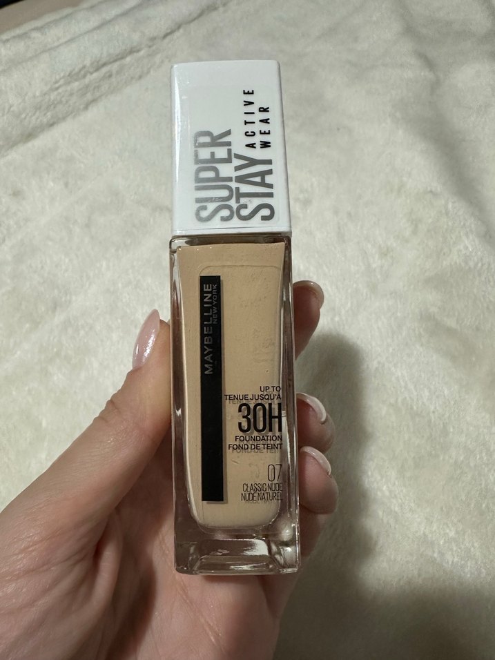 Maybelline Super Stay 30H fondöten, 07 Beige tonunda uzun süre kalıcı kapatıcılık sağlar. Hafif bej rengi ile pürüzsüz bir bitiş sunar.