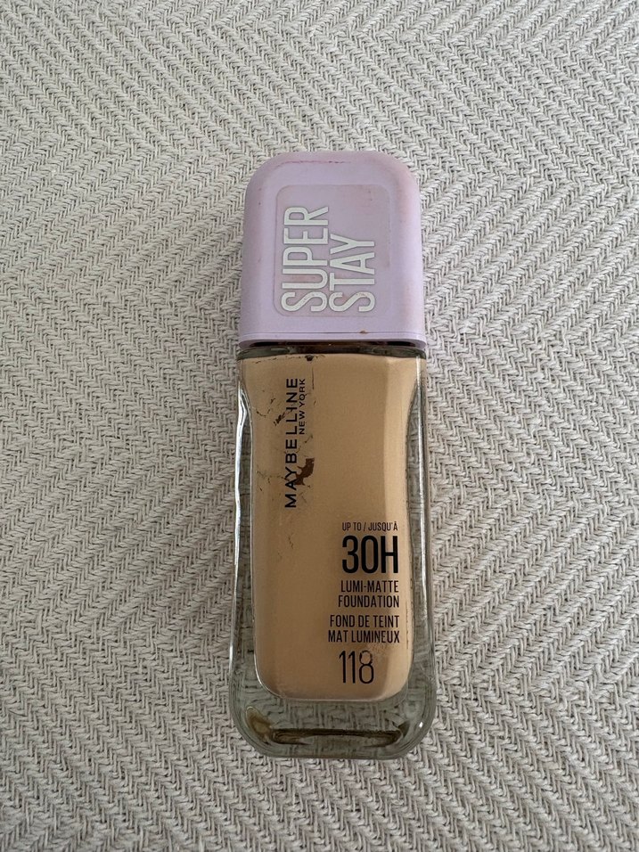 Maybelline Super Stay 30H mat bitişli 118 numara bej fondöten. Hafif ve pürüzsüz dokusuyla uzun süre kalıcı kapatıcılık sağlar.Yarısı doludur