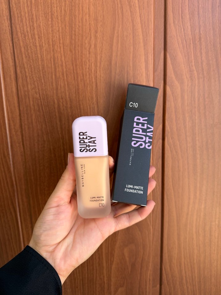 Maybelline Super Stay likit fondöten, C10 bej tonunda, hafif mat bitiş ve uzun süreli kapatıcılık sağlar. Pastel tonlu ambalajda net etiket bulunur.