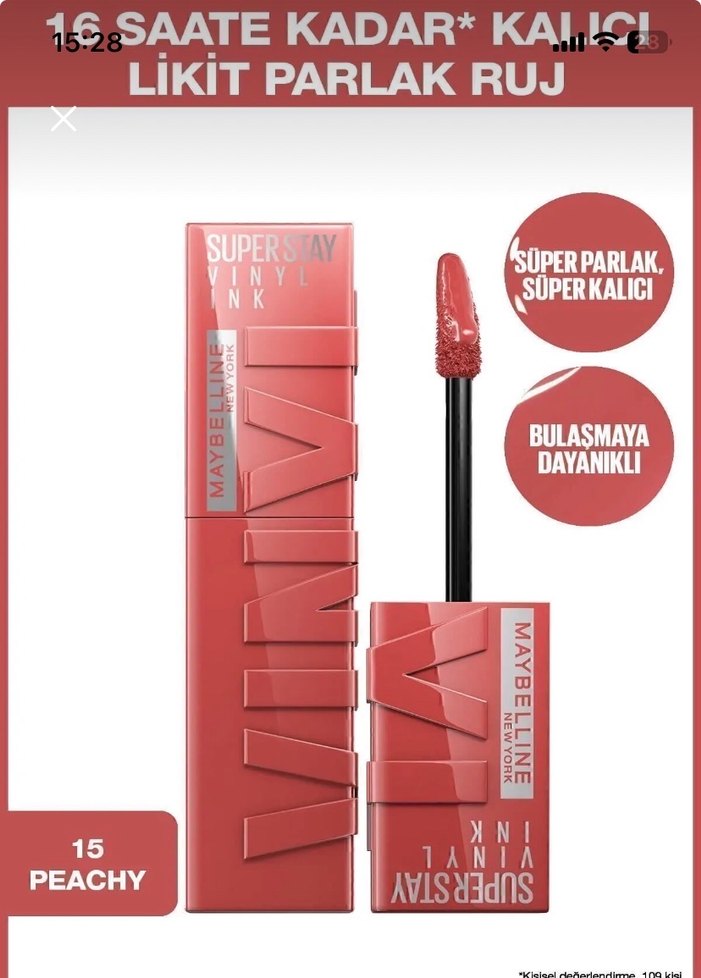 Maybelline Super Stay Vinil Likit Parlak Ruj 15 Peachy
