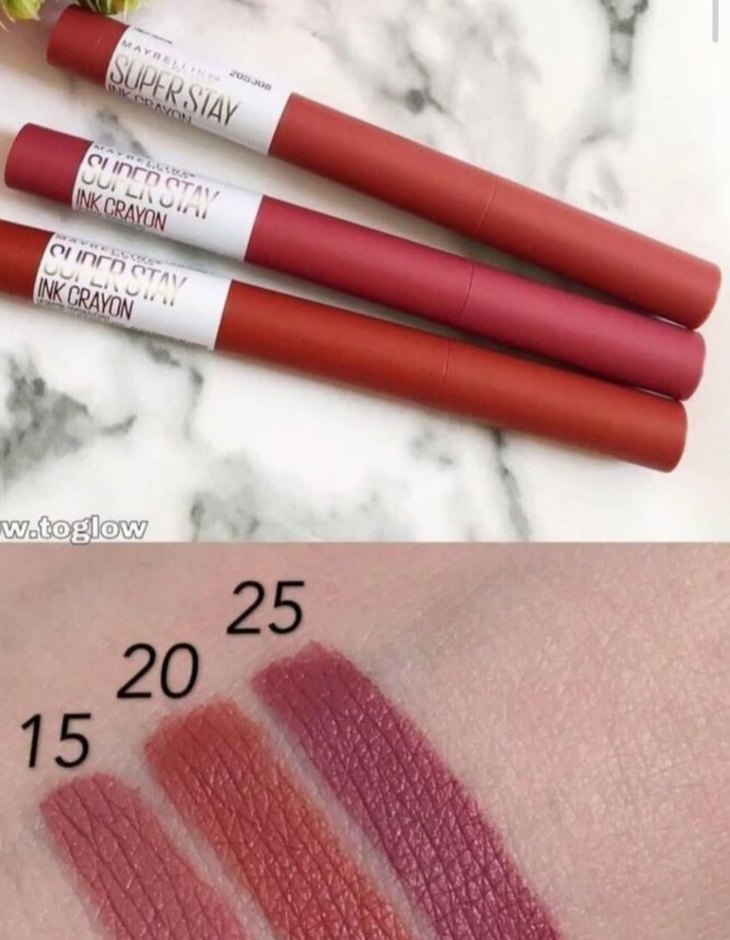 Maybelline SuperStay Ink Crayon rujlar, canlı kırmızı tonlarda ve kalıcı renkle sunulur. Farklı ton seçenekleri mevcuttur.