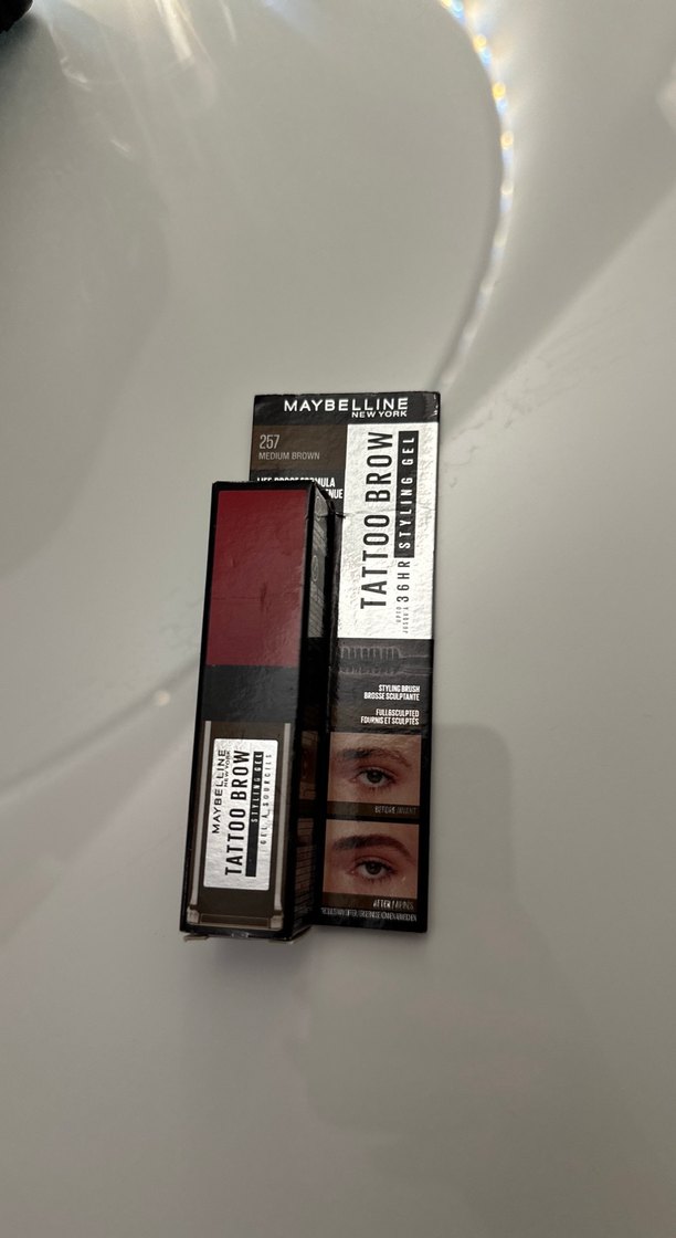 Maybelline Tattoo Brow 257 Medium Brown numaralı kaş jeli, uzun süre kalıcı doğal görünümlü renk sağlar. Açılmamış kutusunda