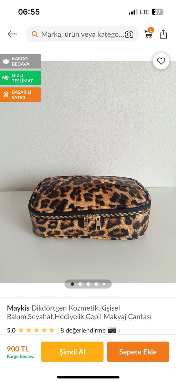 Kahverengi deri malzemeden yapılmış, leopar desenli ve fermuarlı bu makyaj çantası, günlük kullanıma uygundur. Bohem ve retro tarzı yansıtır. ✨