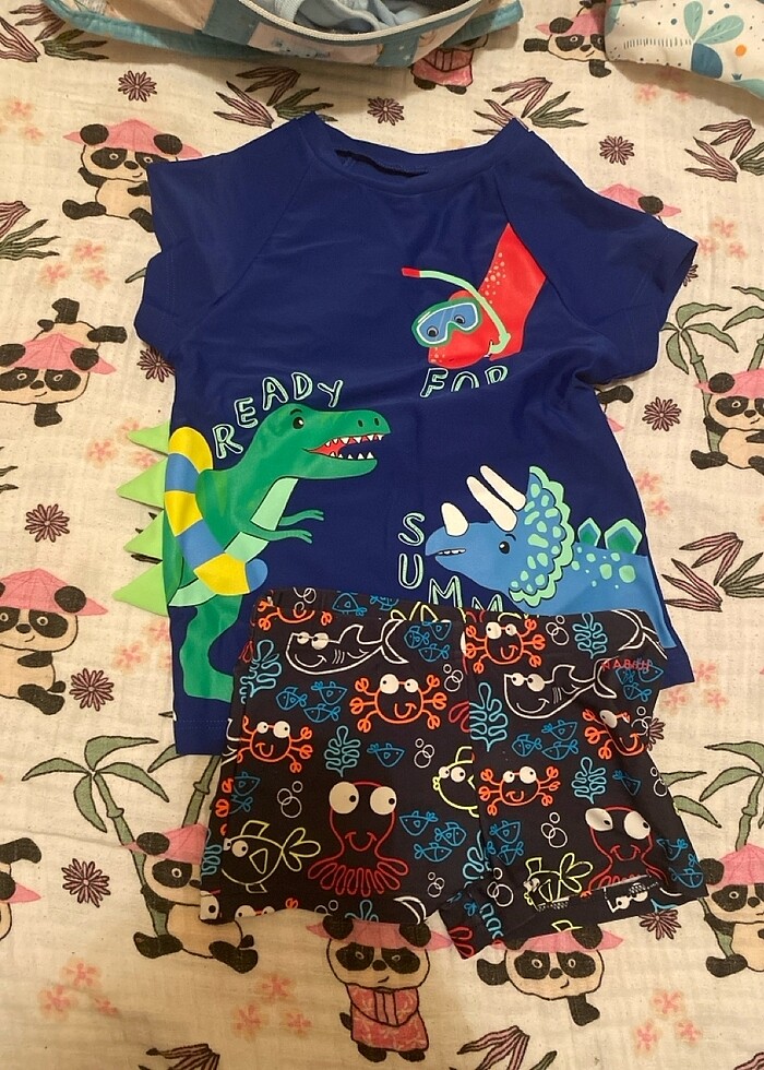 Penti ust alt nabaiji erkek bebek mayo 1-2 yas arasi kullanima uygun sadece bir kez kullanildi uv gecirmez