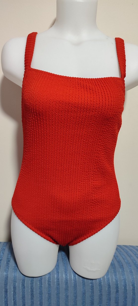 #Mayo Örgü dokulu, kolsuz kırmızı mayo, midi boy ve vücuda oturan kesimiyle minimal plaj stili için uygundur. ️