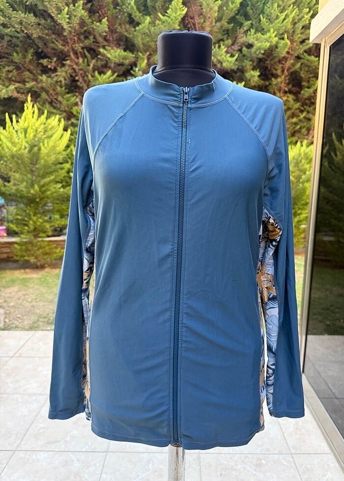 Güneşten korunmak için mayo üstü fotoğrafta göründüğü gibi çok ufak lekesi mevcut yıkanınca detaylı çıkar fiyatı uygun tutuyorum bu yüzden.İadem yoktur