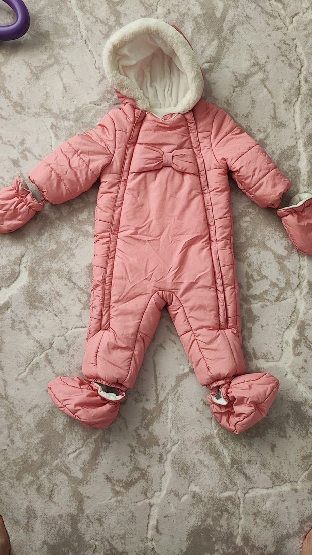 2 kere giydirdim. Tertemiz. Kapüşonlu ve kürklü detaylara sahip, pastel pembe renkte ve desensiz bebek tulumu. Küçüğünüzü sıcak tutar. ❄️ 6 -9 ay