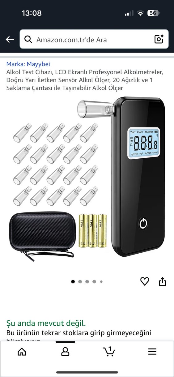 Mayybei alkol test cihazı, LCD ekran ve doğru yarı iletken sensöre sahiptir. 20 ağızlık ve taşınabilir saklama çantası içerir..