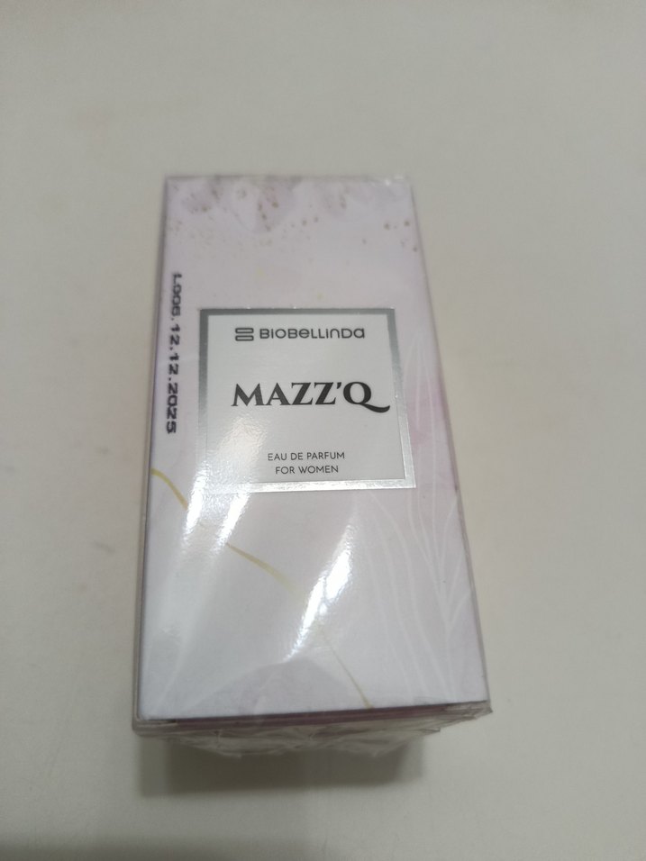 MAZZ'Q kadınlar için Eau de Parfum, şık ve açık renkli ambalajda.