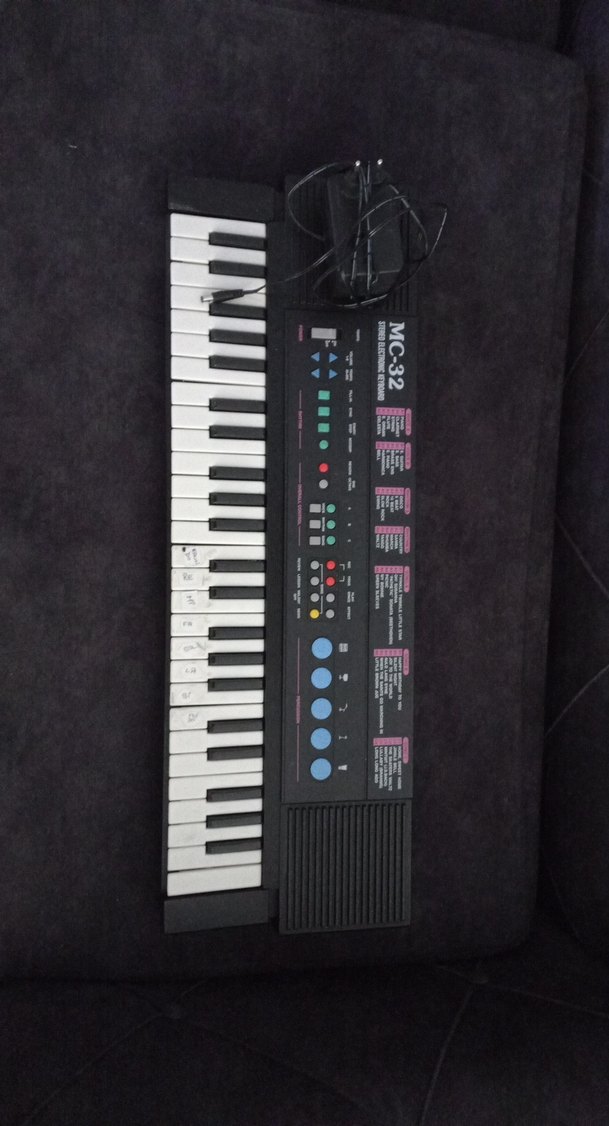 MC-32 klavye, 32 tuşlu ve dahili hoparlörlü, çeşitli ses seçeneklerine sahip. Kontrol tuşları ve bağlantı kablosu içerir.