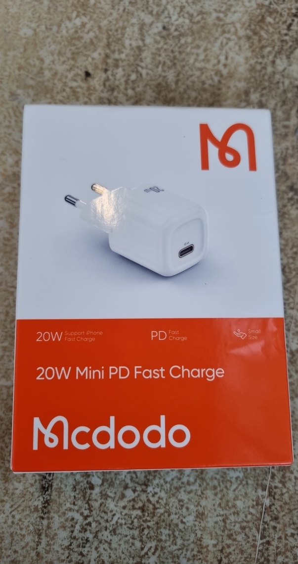 Mcdodo 20W Mini PD hızlı şarj adaptörü, telefonlar için hızlı şarj desteği sunar. Beyaz renkte, kompakt tasarıma sahiptir.