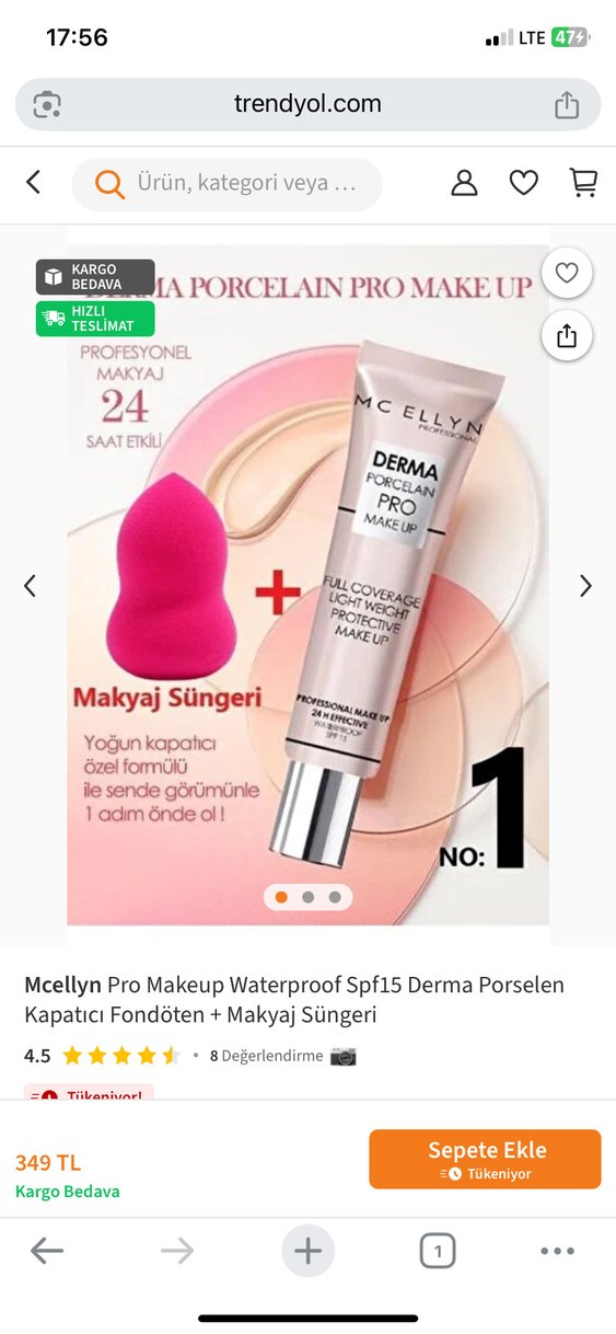 Mcellyn Derma Porselen Pro Makyaj, SPF 15 korumalı, yoğun kapatıcı fondöten ve makyaj süngeri içerir. Suya dayanıklı, 24 saat kalıcıdır.