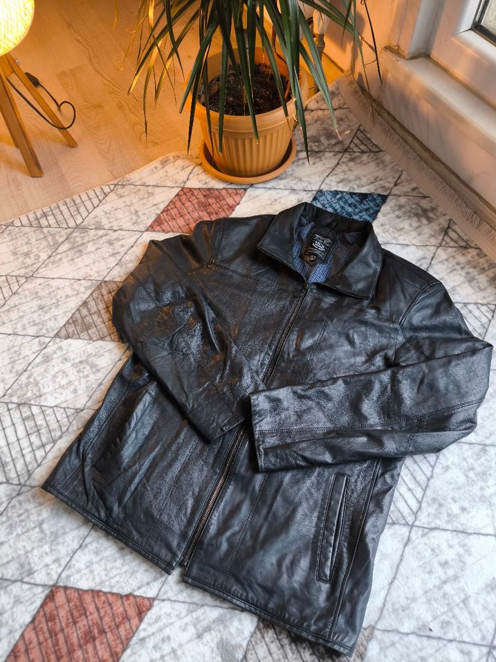 Gri renk Unisex deri ceket. Herhangi bir deformesi yoktur. Uzun kollu, normal boy ve rahat kesimdir. Boy:68cm, Genişlik: 55cm