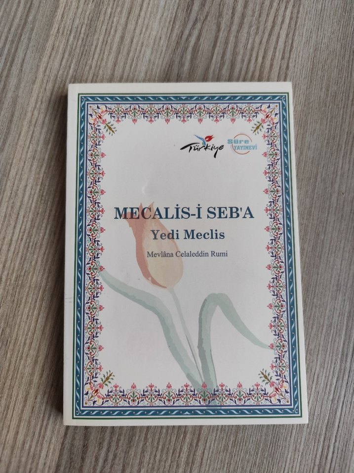 Mecalis-i Seb'a adlı şiir kitabı, Mevlana Celaleddin Rumi'nin Yedi Meclis eserini içerir, klasik manevi şiirler sunar. Tek kusuru iç kapakta isim yazmaktadır.