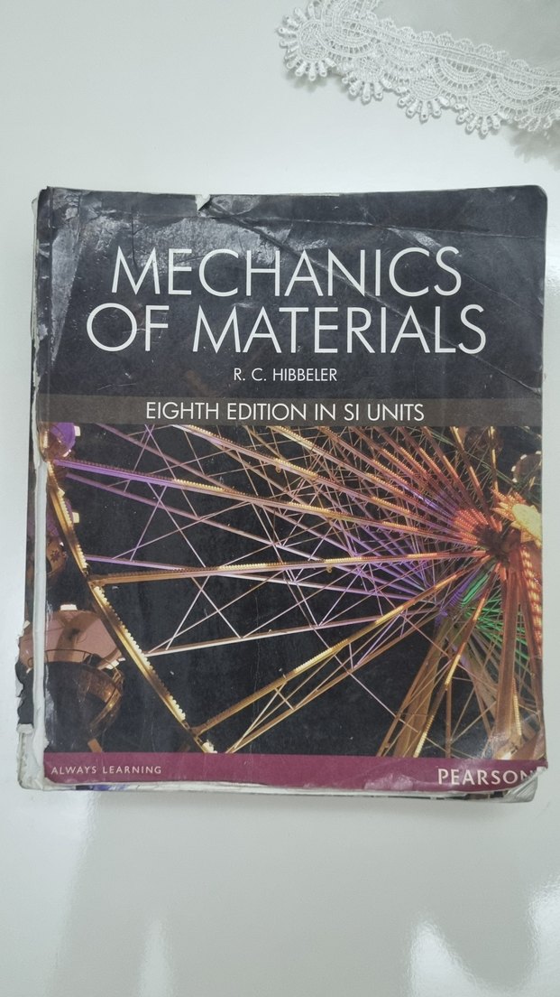 R.C. Hibbeler'in Mechanics of Materials kitabı, sekizinci baskı, SI birimlerinde. Malzeme mekaniği temel konularını içerir.