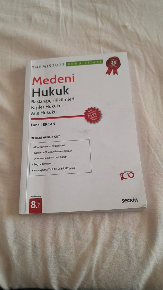 İsmail Ercan tarafından yazılan bu hukuk kitabı, medeni hukukun başlangıç hükümleri, kişiler ve aile hukuku konularını, güncel mevzuat değişiklikleri ve örneklerle açıklar. İlk sayfalara kadar fosforlu kalemle bi yerleri çizmişim sonrasında hocamız değiştiğinden ötürü kullanmadım gerisi temiz 2023 yılında aldım.