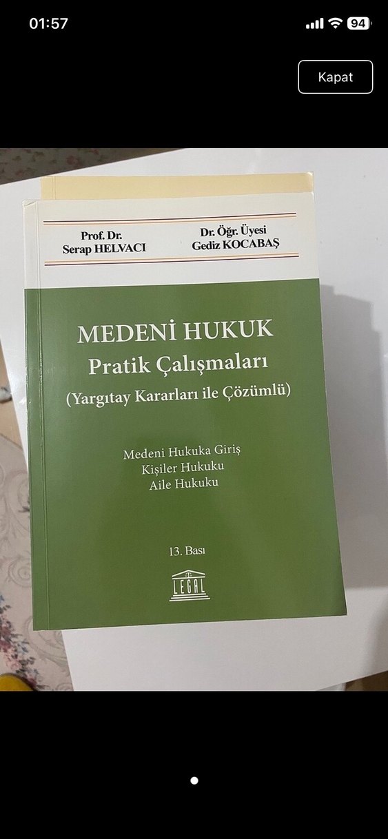 Serap Helvacı ve Gediz Kocabaş tarafından yazılan bu hukuk kitabı, medeni hukuka giriş, kişiler hukuku ve aile hukukunu Yargıtay kararlarıyla çözümlü olarak ele alır.