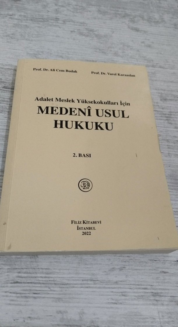 2022 İstanbul basımı, Prof. Dr. Ali Cem Budak ve Prof. Dr. Varlı Kararslan tarafından yazılan Adalet Meslek Yüksekokulları için Medenî Usul Hukuku, 2. bası.