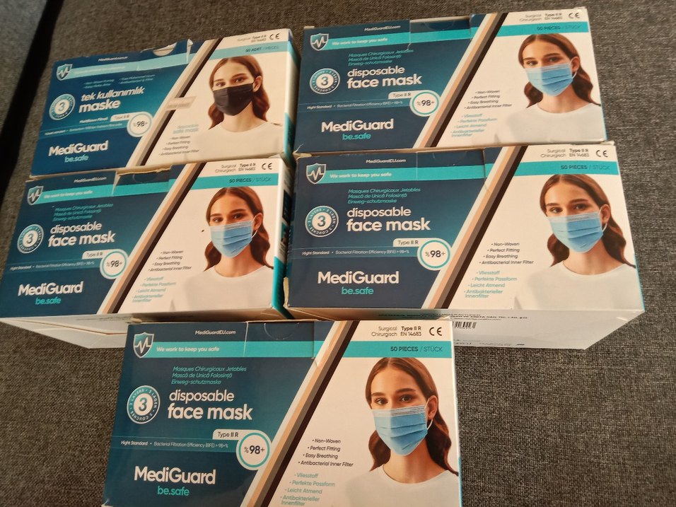 MediGuard tek kullanımlık yüz maskeleri, %98 filtreleme verimliliği, yumuşak nefes alabilir kumaş ve ayarlanabilir burun teli sunar. 50'li paketlerde mevcuttur. 5 paket fiyatıdır yepyeni orijinaldir