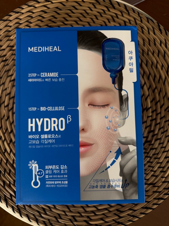 MEDIHEAL Hidro Beta maske, biyoselüloz ve seramid içeren iki aşamalı formülüyle yoğun nem ve cilt bariyeri desteği sağlar. 4.7 puanlı.