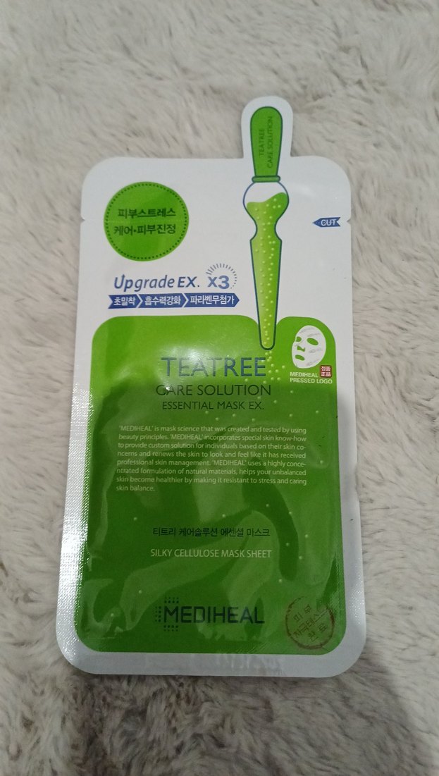 Mediheal Teatree Essential Mask EX, ciltte yatıştırıcı ve dengeleyici etkiye sahip, ipeksi hücre maskesi.