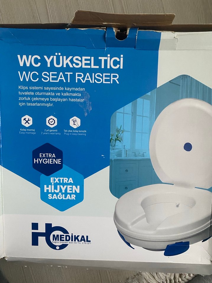 Medikal beyaz WC yükseltici, kaymayı önleyen klips sistemi ve ekstra hijyen sağlayan tasarımıyla kalkmakta zorluk çeken hastalar için uygundur. Gerek kalmadığı için hiç kullanılmadı. Gönül rahatlığıyla kullanabilirsiniz.