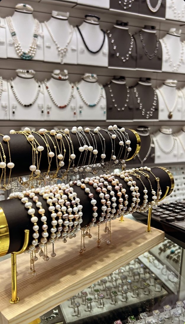 Medine'den Özel Hakiki İnci Asansörlü Bileklik Altın rengi, ve işleme desenli kadın bilekliği. Bohem tarzıyla klasik şıklığı birleştirir, günlük kullanıma uygundur. ✨