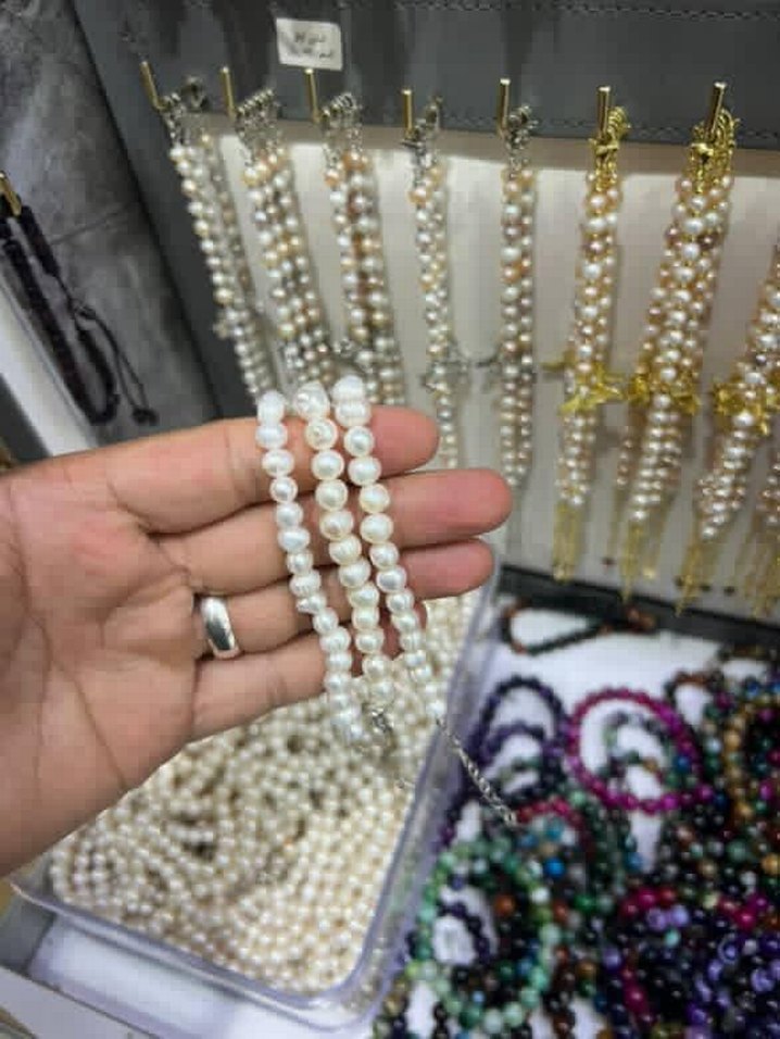 Medine'den Hakiki İnci Bileklik , normal uzunlukta, bohem ve zarif günlük kullanıma uygun kolye.