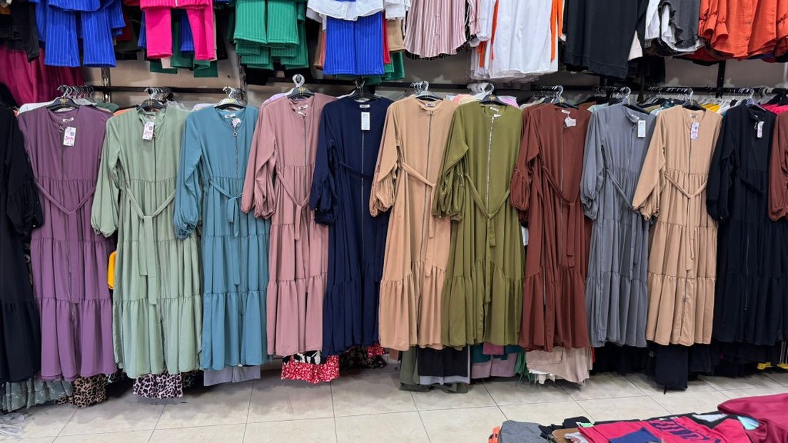 Diger kadın uzun elbise, bol kesim, uzun kollu ve yuvarlak yakalıdır. Yumuşak sentetik kumaştan, bohem tarzda, fırfır detaylı ve pastel batik renklidir.