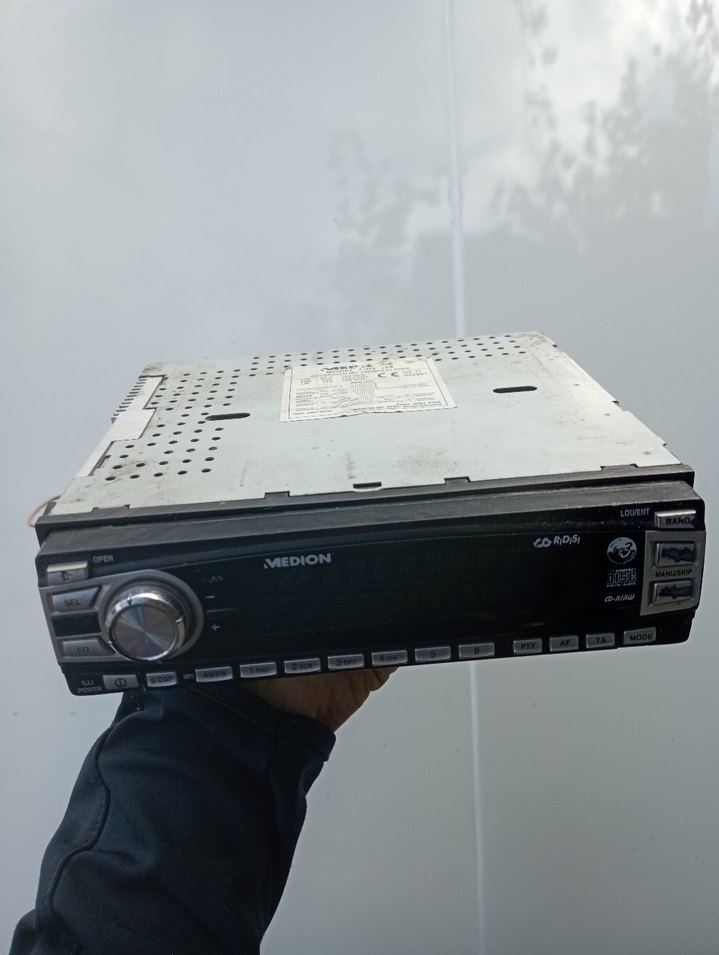 Medion marka siyah oto müzik sistemi, CD çalar ve kolay kullanım için çoklu kontrol düğmelerine sahiptir. Araç kullanımı için kompakt tasarıma sahiptir.